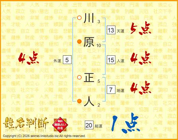 川原正人さんの天運は13画の5点!