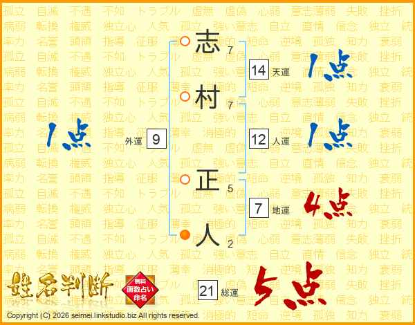 志村正人さんの総運は21画の5点!