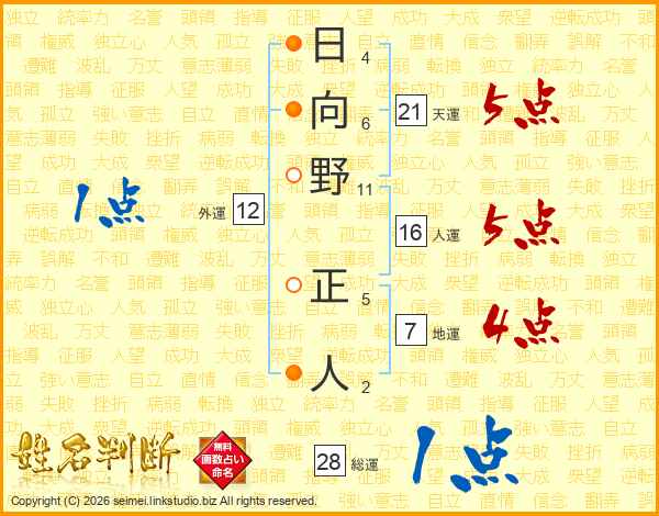 日向野正人さんの総運は28画の1点!