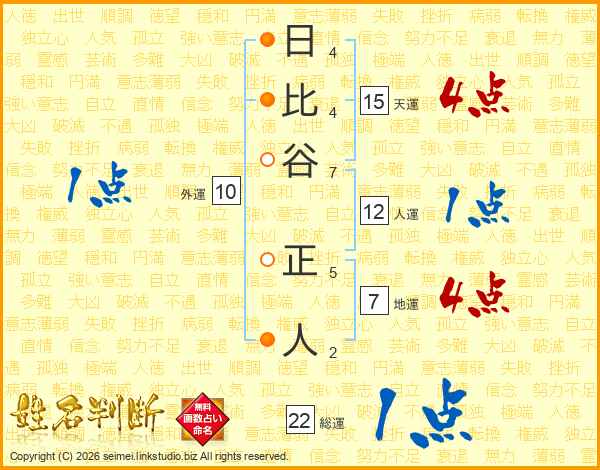 日比谷正人さんの総運は22画の1点!