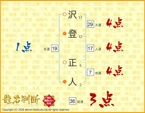沢(17画)登(12画) 正(5画)人(2画)