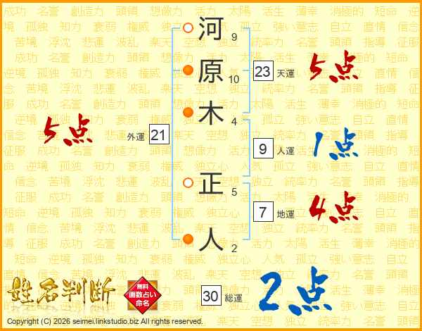 河原木正人さんの外運は21画の5点!