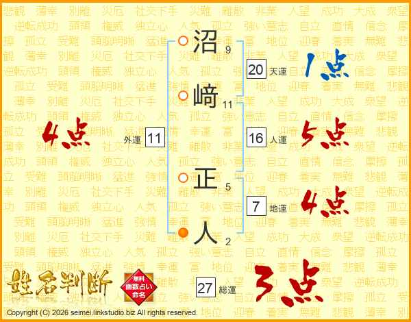沼(9画)﨑(11画) 正(5画)人(2画)