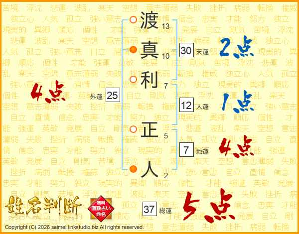 渡真利正人さんの総運は37画の5点!