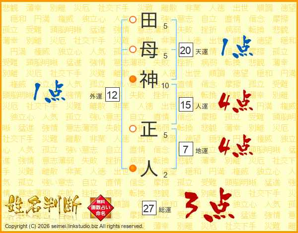 田(5画)母(5画)神(10画) 正(5画)人(2画)