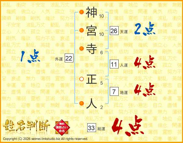 神宮寺正人さんの総運は33画の4点!