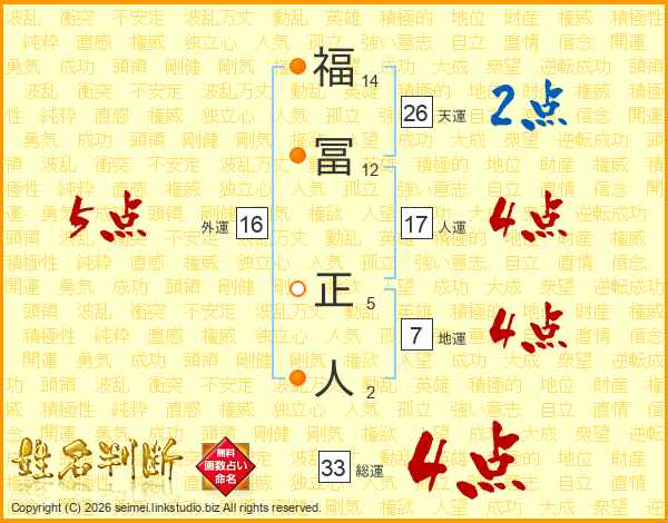 福冨正人さんの総運は33画の4点!