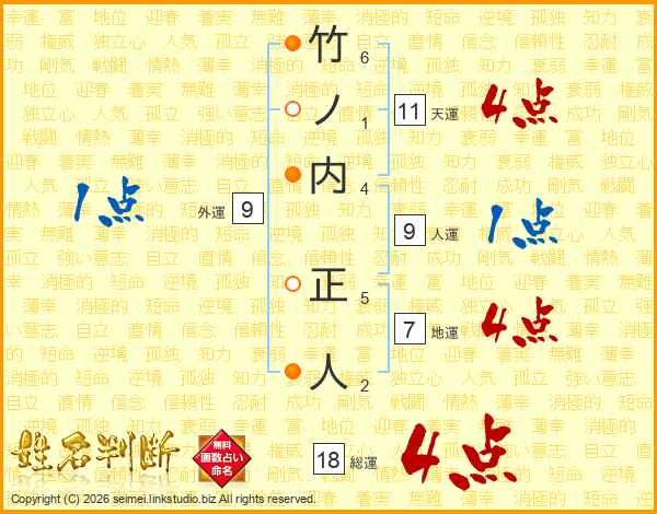 竹(6画)ノ(1画)内(4画) 正(5画)人(2画)
