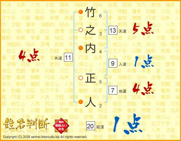 竹(6画)之(3画)内(4画) 正(5画)人(2画)