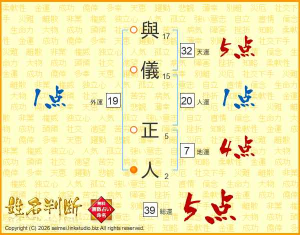 與儀正人さんの総運は39画の5点!