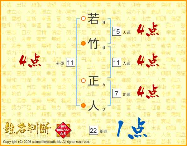 若竹正人さんの総運は22画の1点!