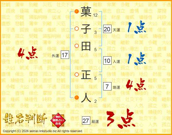 菓(12画)子(3画)田(5画) 正(5画)人(2画)