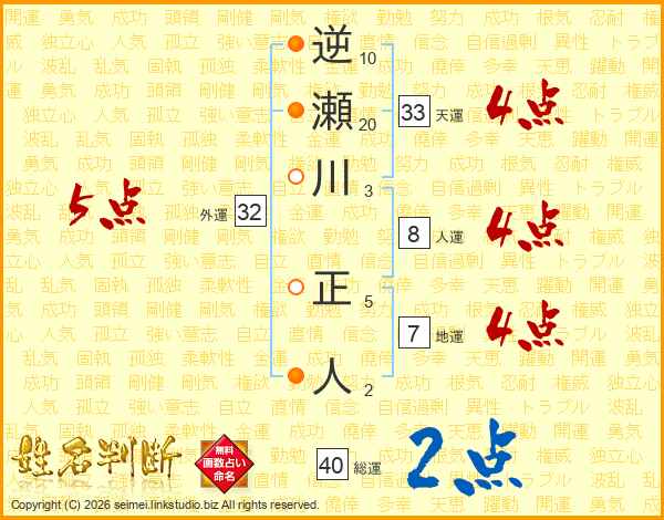 逆瀬川正人さんの総運は40画の2点!