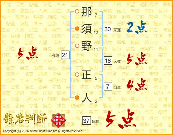 那須野正人さんの総運は37画の5点!