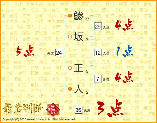 鯵坂正人さんの天運は29画の4点!