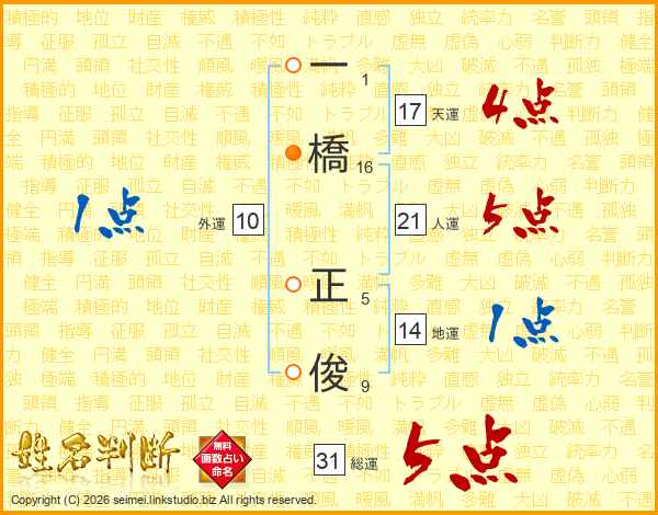 一橋正俊さんの天運は17画の4点!