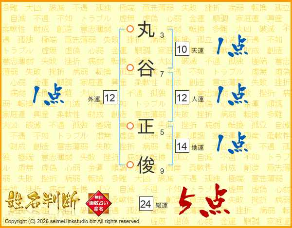 丸(3画)谷(7画) 正(5画)俊(9画)