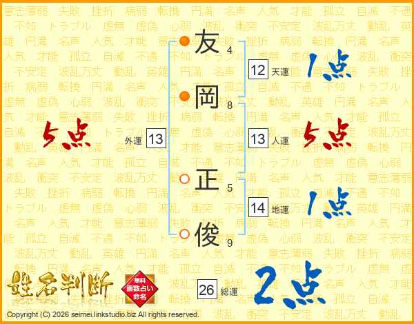 友岡正俊さんの人運は13画の5点!