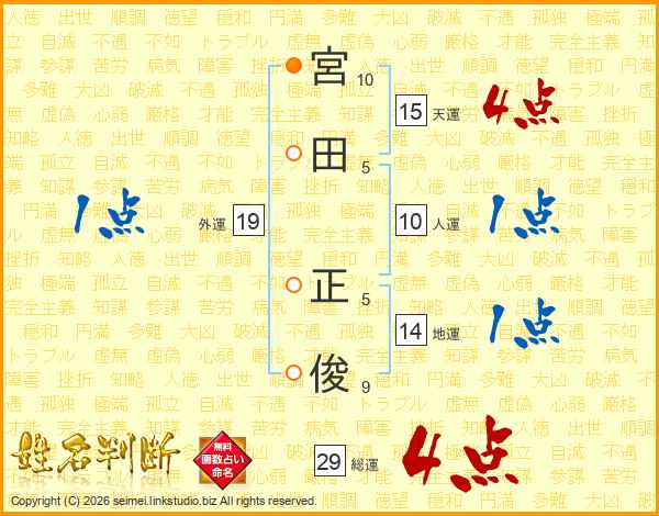 宮田正俊さんの総運は29画の4点!