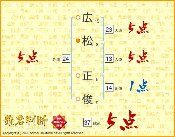 広松正俊さんの総運は37画の5点!