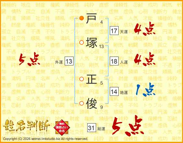 戸塚正俊さんの総運は31画の5点!
