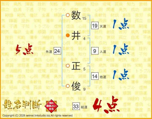 数井正俊さんの総運は33画の4点!