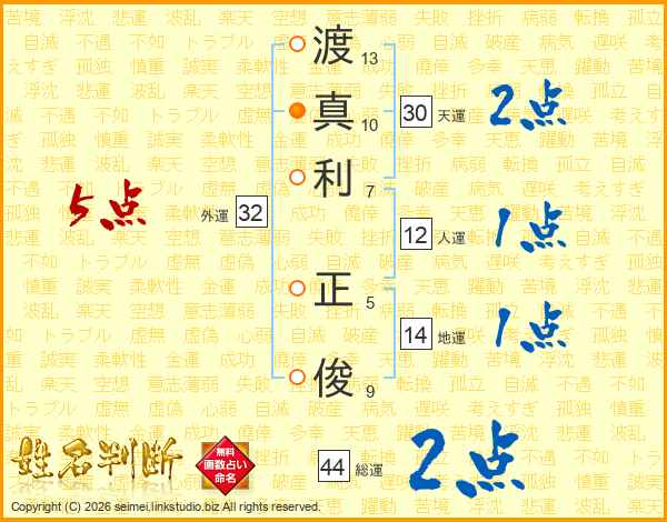 渡真利正俊さんの総運は44画の2点!
