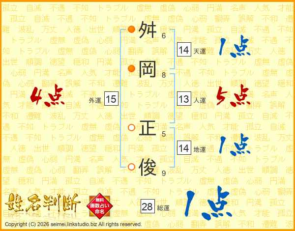 舛岡正俊さんの天運は14画の1点!