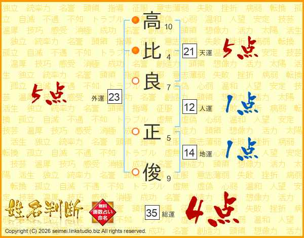 高(10画)比(4画)良(7画) 正(5画)俊(9画)