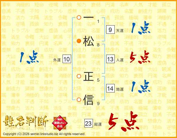 一松正信さんの人運は13画の5点!