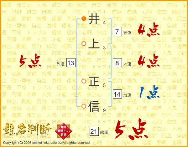井上正信さんの総運は21画の5点!
