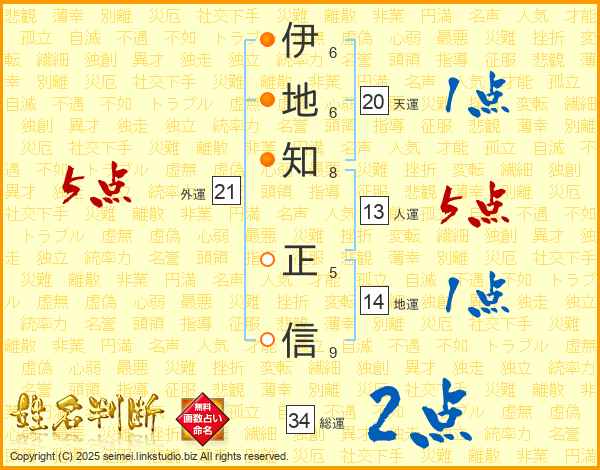 伊地知正信さんの外運は21画の5点!