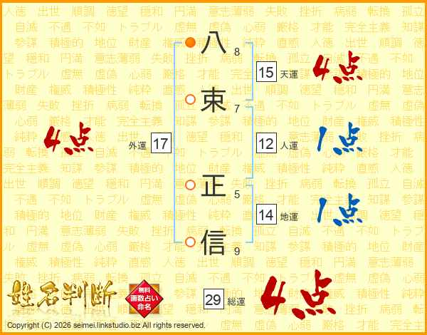 八束正信さんの総運は29画の4点!