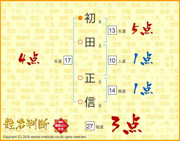 初田正信さんの総運は27画の3点!