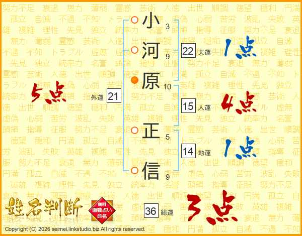 小河原正信さんの天運は22画の1点!