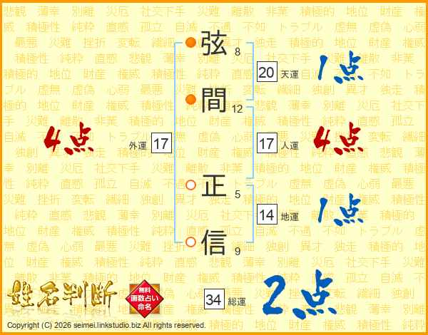 弦間正信さんの天運は20画の1点!