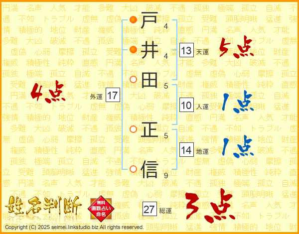 戸(4画)井(4画)田(5画) 正(5画)信(9画)