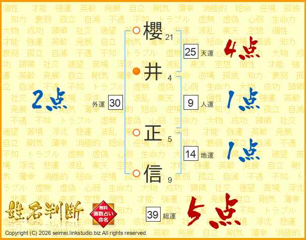 櫻井正信さんの総運は39画の5点!