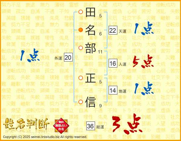 田(5画)名(6画)部(11画) 正(5画)信(9画)