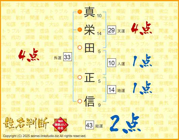 真(10画)栄(14画)田(5画) 正(5画)信(9画)