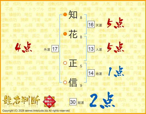 知花正信さんの人運は13画の5点!