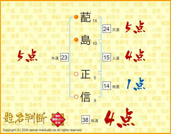 蓜島正信さんの総運は38画の4点!