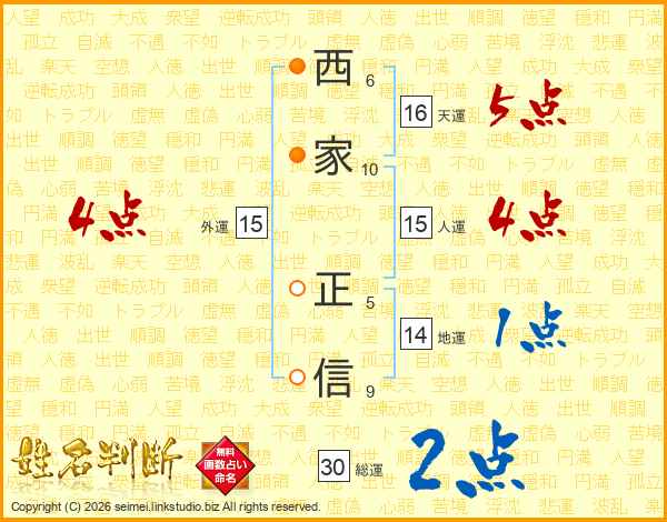 西家正信さんの総運は30画の2点!