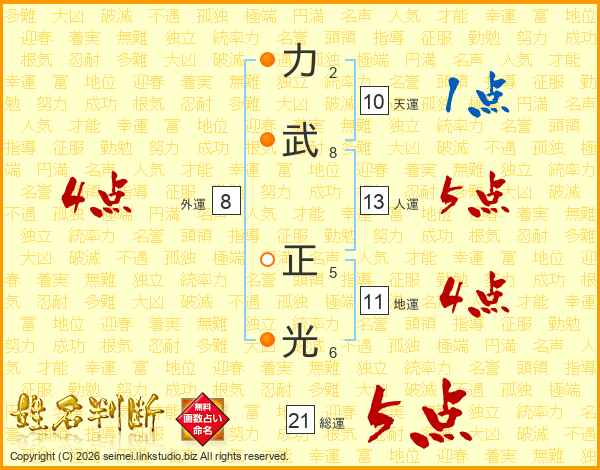 力武正光さんの総運は21画の5点!