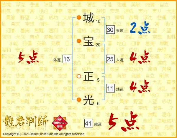 城宝正光さんの総運は41画の5点!