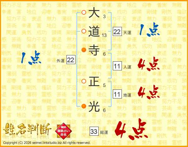 大道寺正光さんの天運は22画の1点!