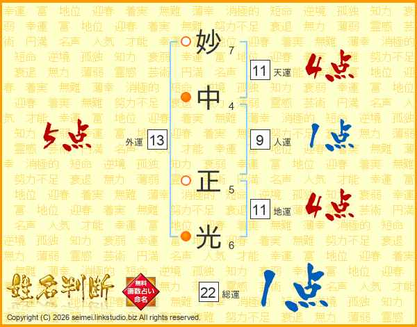 妙中正光さんの総運は22画の1点!