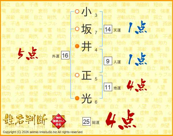 小(3画)坂(7画)井(4画) 正(5画)光(6画)