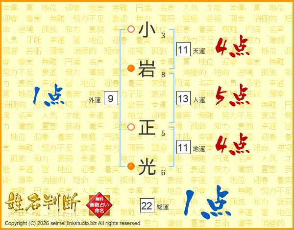小岩正光さんの総運は22画の1点!