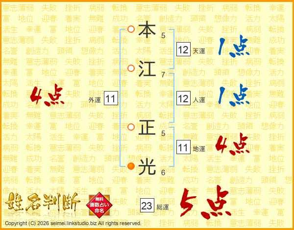本江正光さんの地運は11画の4点!